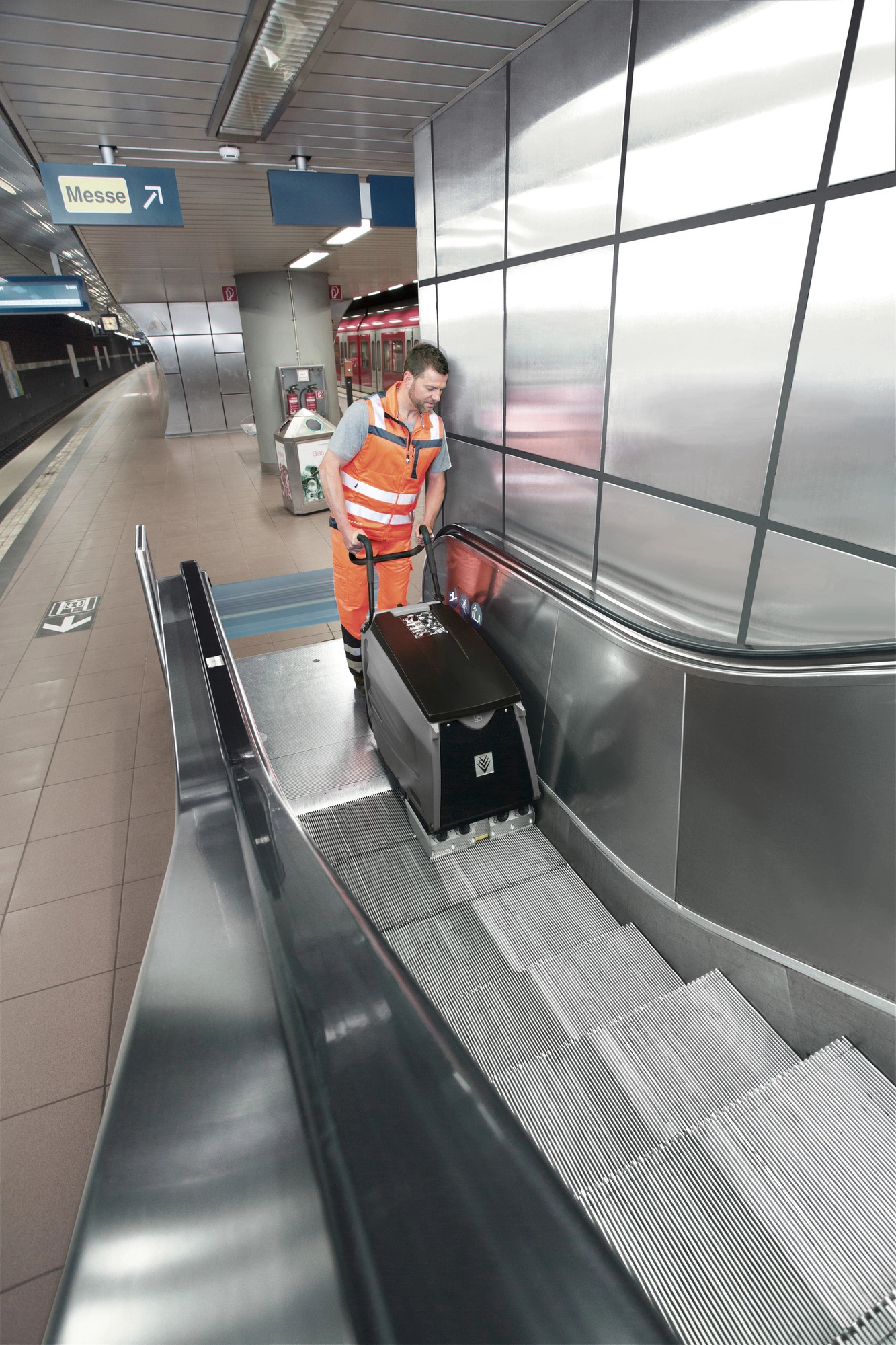 Karcher szorowarka schodów ruchomych BR 47/35 ESC to urządzenie, które doskonale sprawdza się w obiektach o dużym natężeniu ruchu, takich jak galerie handlowe czy dworce. Dzięki swojej wyjątkowej konstrukcji, zapewnia wysoką wydajność czyszczenia, co pozwala na szybkie i efektywne utrzymanie czystości. Przy pomocy tej szorowarki można z łatwością usunąć zanieczyszczenia z ruchomych schodów, a także z podłóg w strefach publicznych, gdzie konieczne jest zachowanie wysokich standardów higieny. Wysoka moc ssania oraz zastosowanie czterech węży ssących sprawiają, że woda i brud są skutecznie odsysane, co przekłada się na bezpieczeństwo użytkowników.