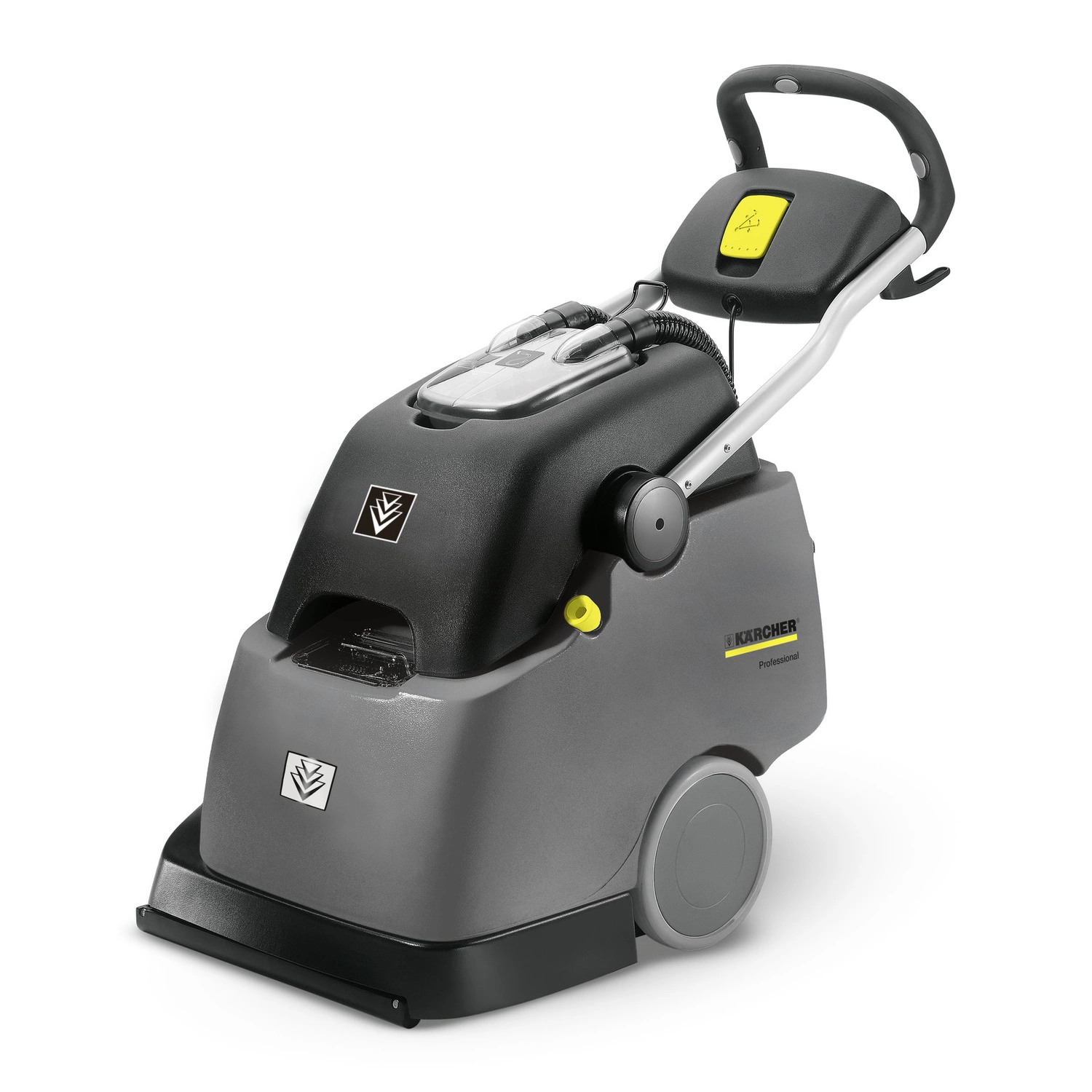 Karcher BRC 45/45 C wykorzystuje innowacyjne rozwiązania technologiczne, które zapewniają wysoką jakość czyszczenia. Dwie przeciwbieżnie obracające się szczotki walcowe skutecznie rozprowadzają środek czyszczący, co pozwala na głębokie wnikanie w runo wykładziny. Ta metoda nie tylko usuwa zanieczyszczenia, ale także nadaje wykładzinom świeży wygląd. Dzięki wahliwemu zawieszeniu, szczotki mają nieprzerwany kontakt z powierzchnią, co jest szczególnie ważne w przypadku nierównych podłóg. Operator może swobodnie poruszać się zarówno do przodu, jak i do tyłu, co znacznie ułatwia pracę.