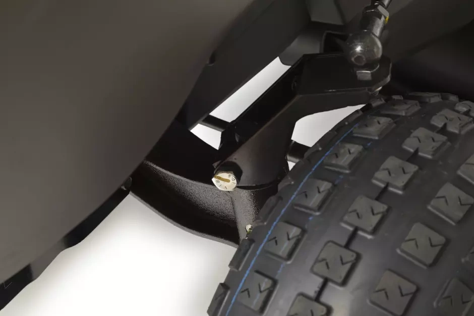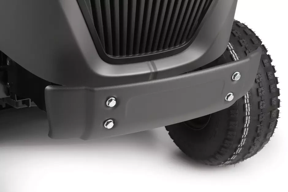 Do traktora można dokupić zestaw do mulczowania, zaczep do przyczepy oraz ładowarkę akumulatorów, co zwiększa jego funkcjonalność.