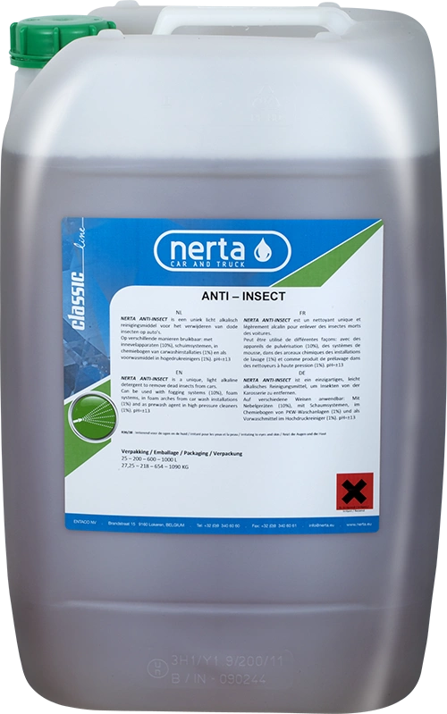 • NERTA ANTI-INSECT jest specjalnym, alkalicznym środkiem do usuwania martwych owadów z karoserii pojazdów.