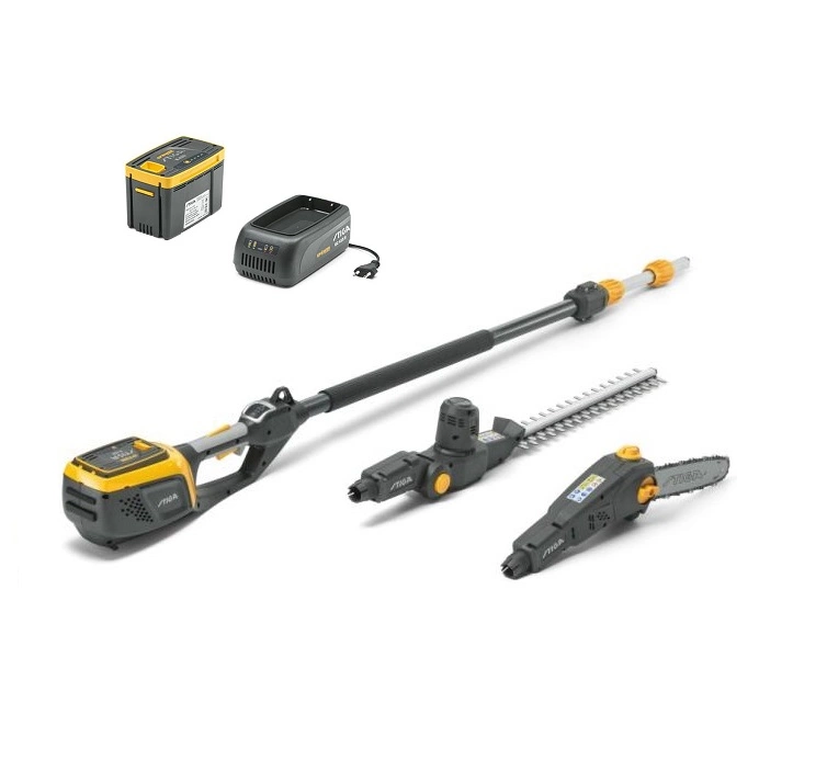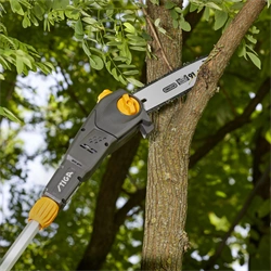 Tak, zestaw jest wyposażony w pilarkę, która umożliwia cięcie grubych gałęzi o średnicy do 25 cm, co czyni go wszechstronnym narzędziem do różnorodnych prac w ogrodzie.