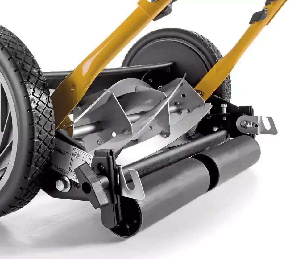 Kosiarka nie jest wyposażona w kosz na trawę, co pozwala na swobodne koszenie bez konieczności jego opróżniania.